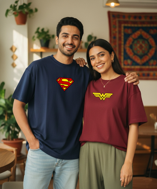 Superman / Wonder Woman – Couple Oversized Fit T-shirts (Set of 2)