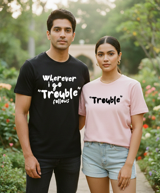 Wherever I Go Trouble Follows / Trouble – Couple Regular Fit T-shirts (Set of 2)