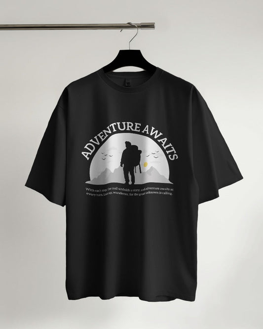 Adventure Awaits Black Trending Oversized T-shirt